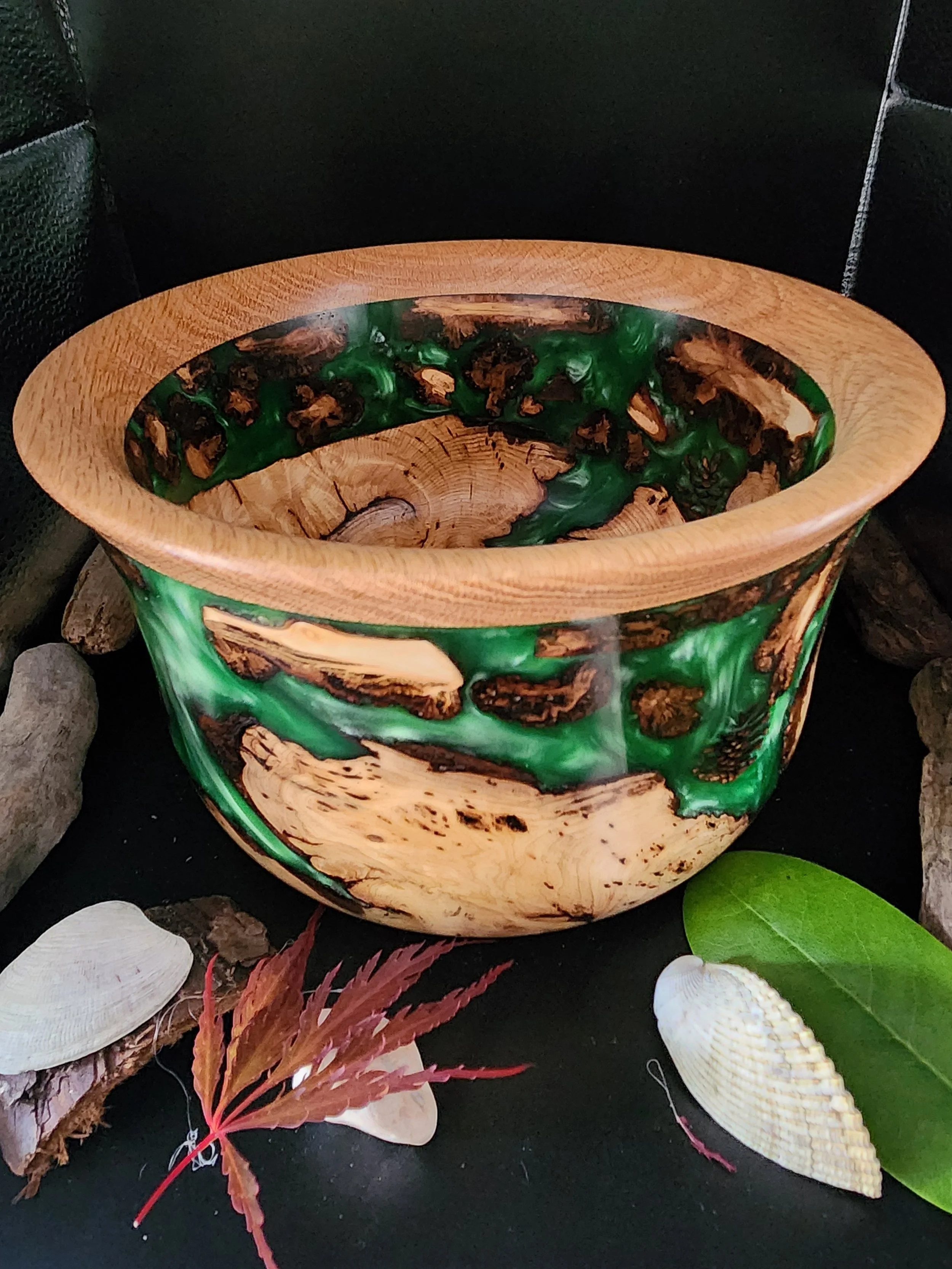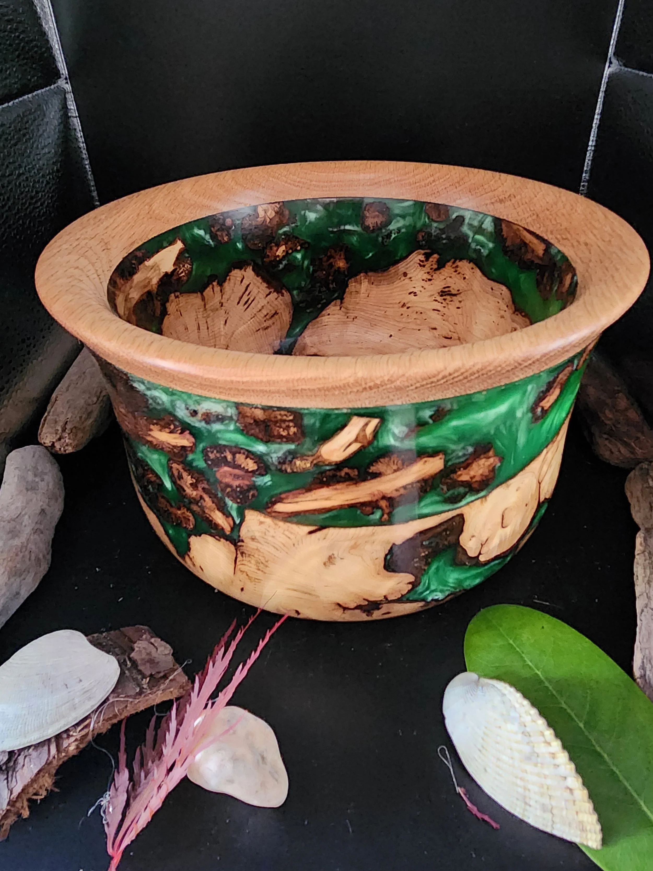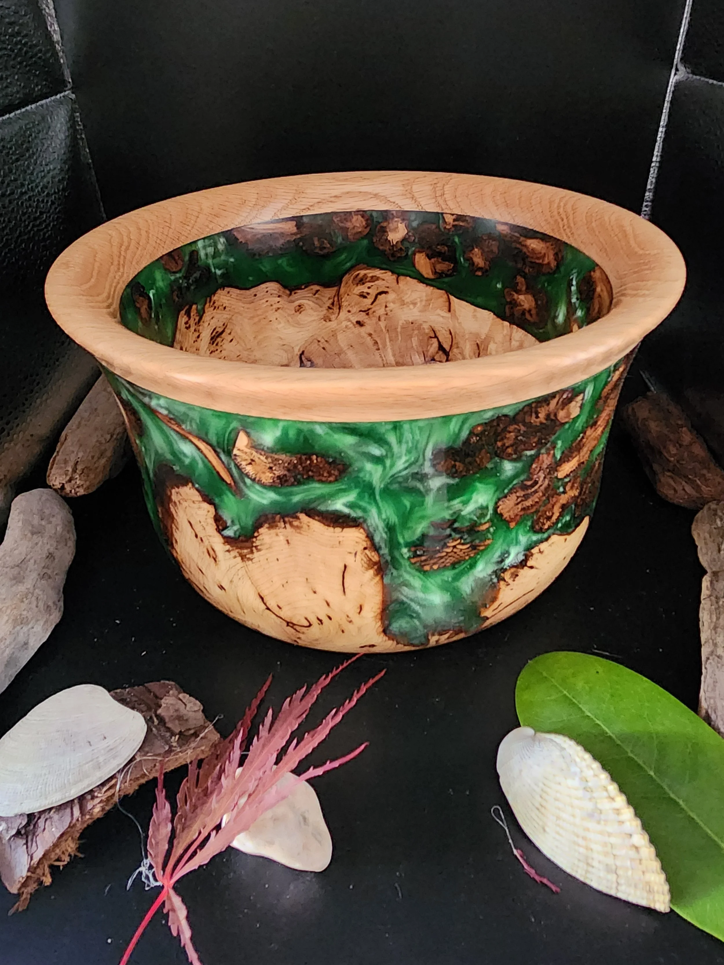 Material: Birds-eye maple burl with Oak top rim
